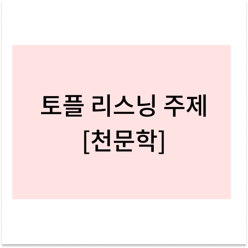 4가지 큰 카테고리로 토플 리스닝에서 자주 출제되는 주제, 천문학 주제에서 자주 출제되는 용어들을 살펴보았습니다. 다음 포스팅에서는 토플 리스닝에서 자주 다루는 토픽 중 역사 토픽에 대해서 알아보는 포스팅으로 찾아뵙겠습니다!