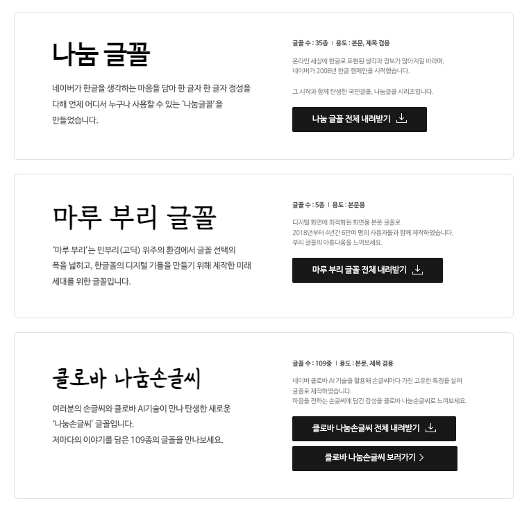 네이버가 만든 150여종의 글꼴을 한번에 만나보세요
